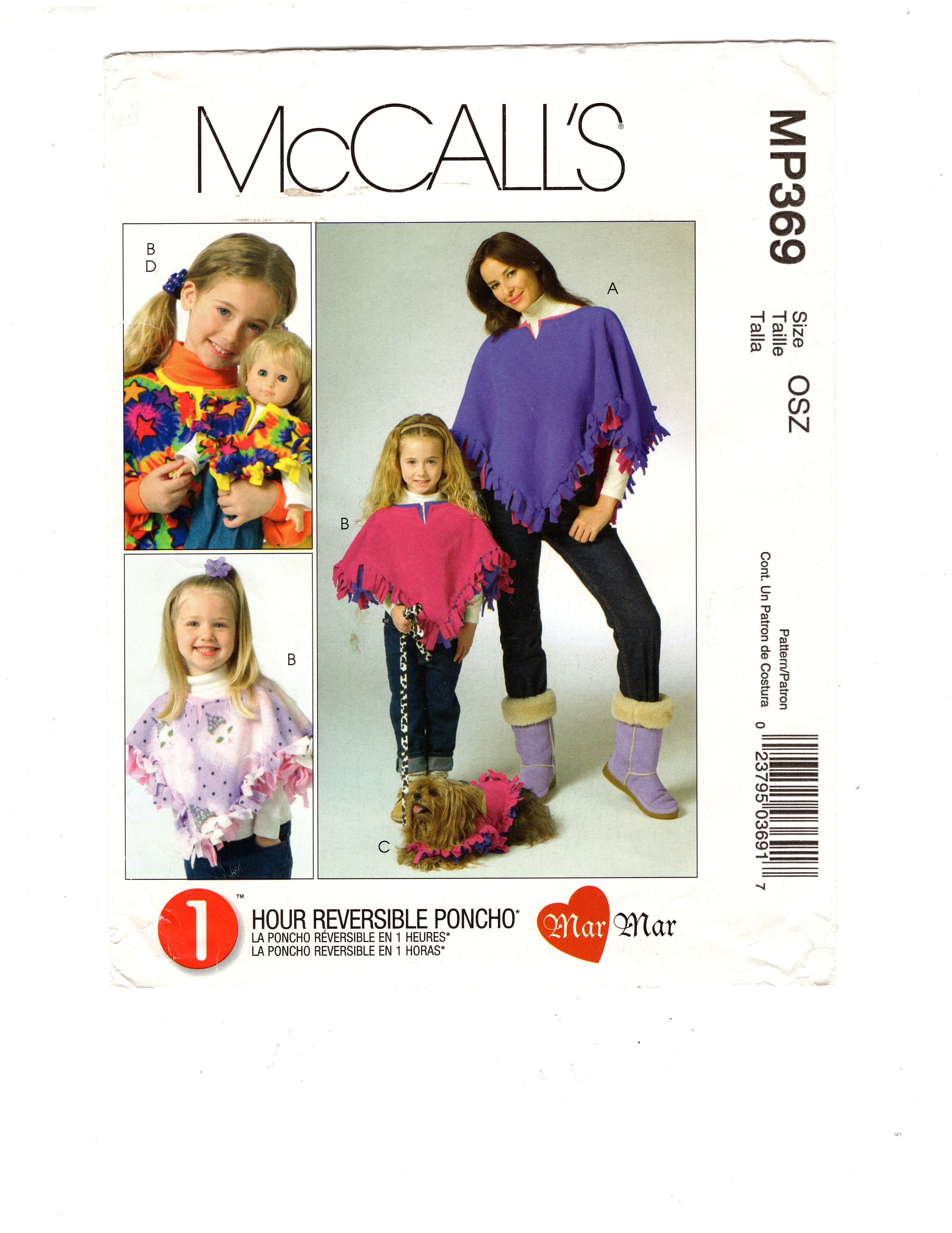 Reversible Poncho Sewing Pattern Children Dolls Dogs Women Uncut Mccall S M4981 4981 Poncho Pattern Sewing Sewing Patterns For Kids Jacket Pattern Sewing